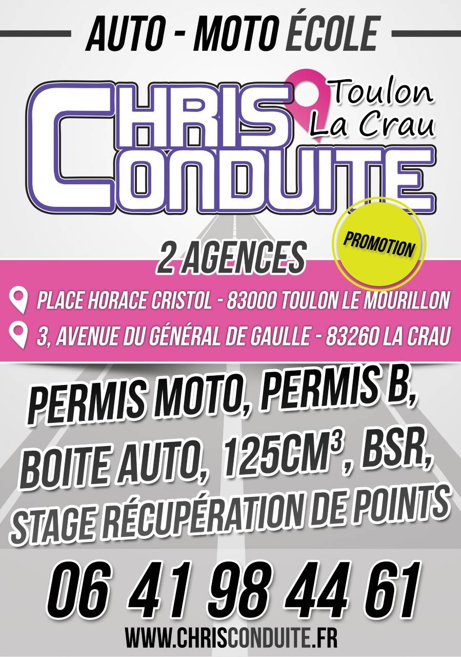 Pour passer son permis en accéléré, en savoir plus sur le permis à 1 Euro ou s'inscrire au code et à la conduite accompagnée AAC à La Crau : n'hésitez pas à contacter l'auto-école Chris Conduite.